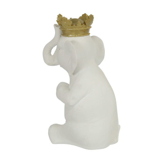 Polyresin 14"h Elephant W/ Crown, White/gold