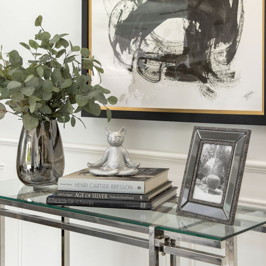 Sold outPolyresin, 7" Yoga Cat, Silver