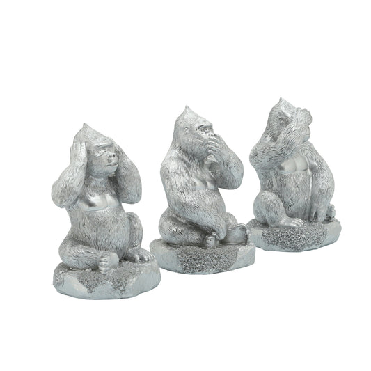 Resin, S/3 Hear, Speak, See No Evil Gorilla,silver