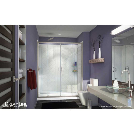 Visions 32 in. D x 60 in. W x 76 3/4 in. H Sliding Shower Door in Chrome with Left Drain White Base, Backwalls