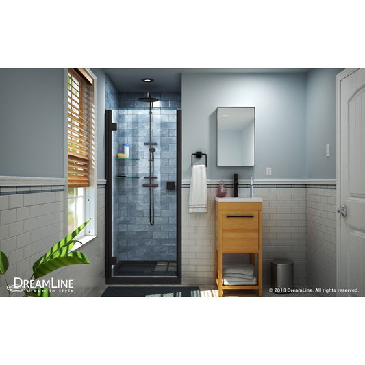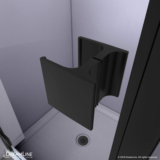 Lumen 36 in. D x 42 in. W by 74 3/4 in. H Hinged Shower Door in Satin Black with Black Acrylic Base Kit
