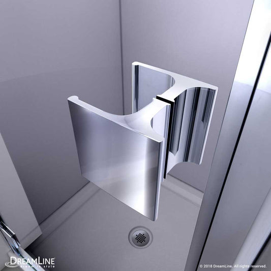 Lumen 42 in. D x 42 in. W by 74 3/4 in. H Hinged Shower Door in Chrome with White Acrylic Base Kit