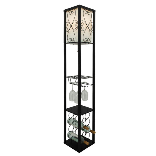 62.5? Wood/metal Etagere / Floor Lamp W/wine Rack