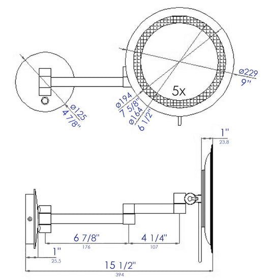 ALFI brand ABM8WR-PC 8" Round Wall Mounted 5x Magnify Cosmetic Mirror