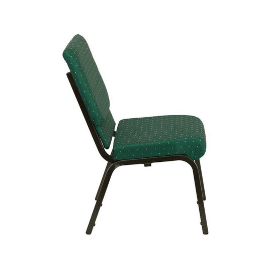 18.5''W Stacking Church Chair in Green Patterned Fabric - Gold Vein Frame