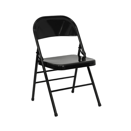 2 Pack Triple Braced & Double Hinged Black Metal Folding Chair