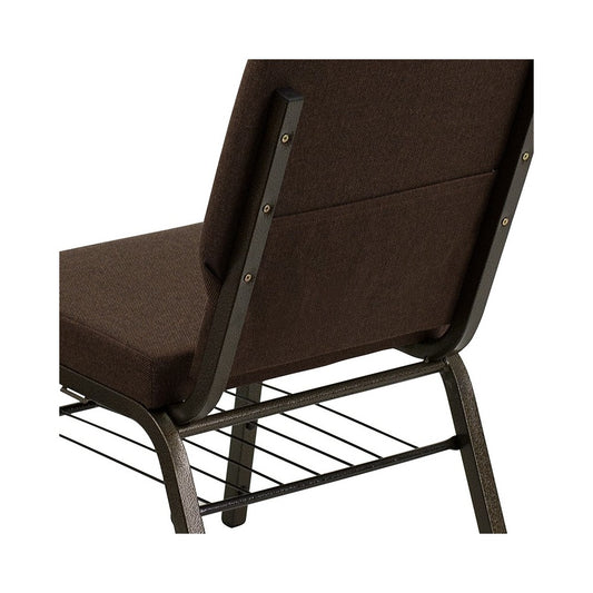 18.5''W Church Chair in Brown Fabric with Book Rack - Gold Vein Frame