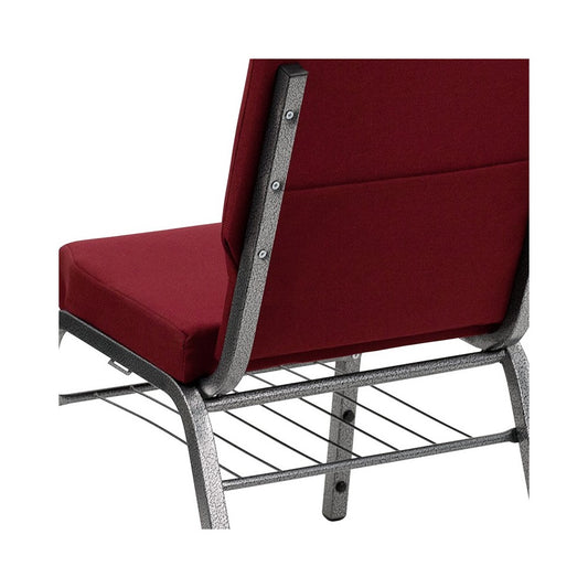 18.5''W Church Chair in Burgundy Fabric with Book Rack - Silver Vein Frame