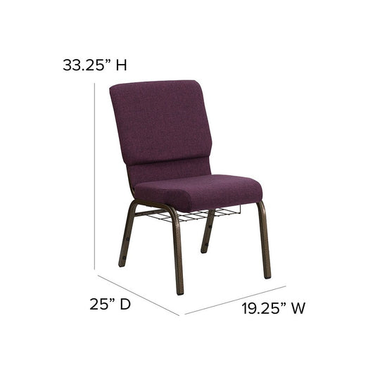 18.5''W Church Chair in Plum Fabric with Cup Book Rack - Gold Vein Frame