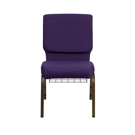 18.5''W Church Chair in Royal Purple Fabric with Cup Book Rack - Gold Vein Frame