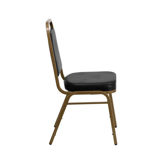 Trapezoidal Back Stacking Banquet Chair in Black Vinyl - Gold Frame