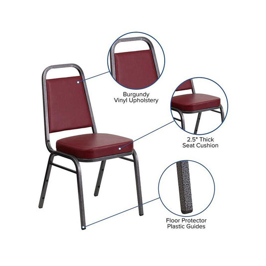 Trapezoidal Back Stacking Banquet Chair in Burgundy Vinyl - Silver Vein Frame