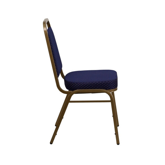 Trapezoidal Back Stacking Banquet Chair in Navy Patterned Fabric - Gold Frame