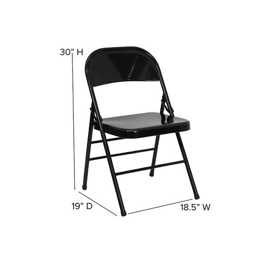 Triple Braced & Double Hinged Black Metal Folding Chair