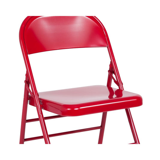 Triple Braced & Double Hinged Red Metal Folding Chair