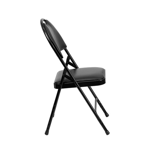 Ultra-Premium Triple Braced Black Vinyl Metal Folding Chair with Easy-Carry Handle