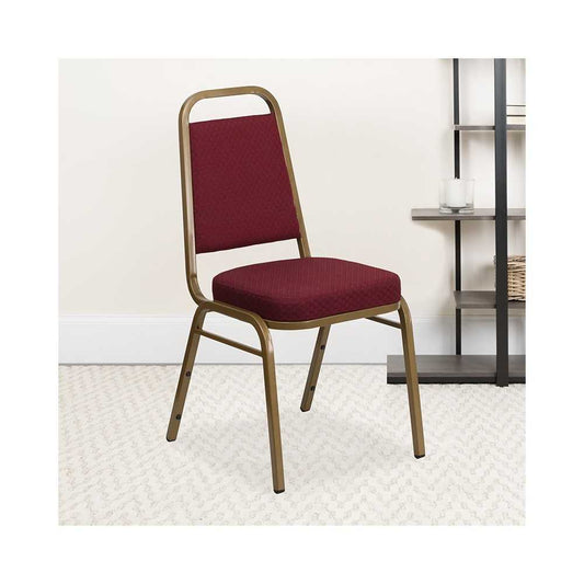 Trapezoidal Back Stacking Banquet Chair in Burgundy Patterned Fabric - Gold Frame