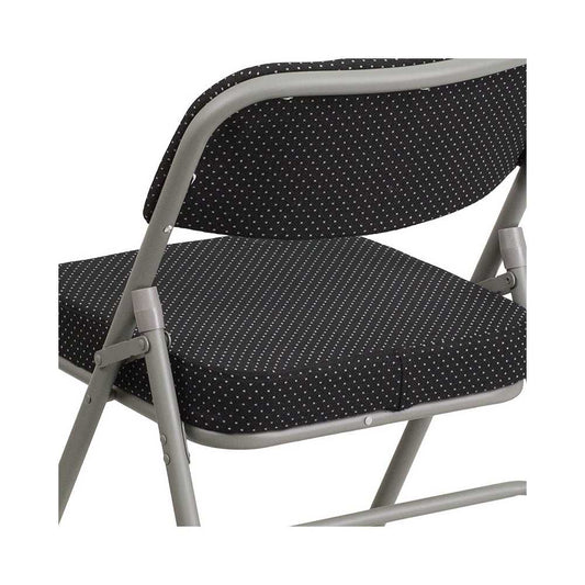 Premium Curved Triple Braced & Double Hinged Black Pin-Dot Fabric Metal Folding Chair