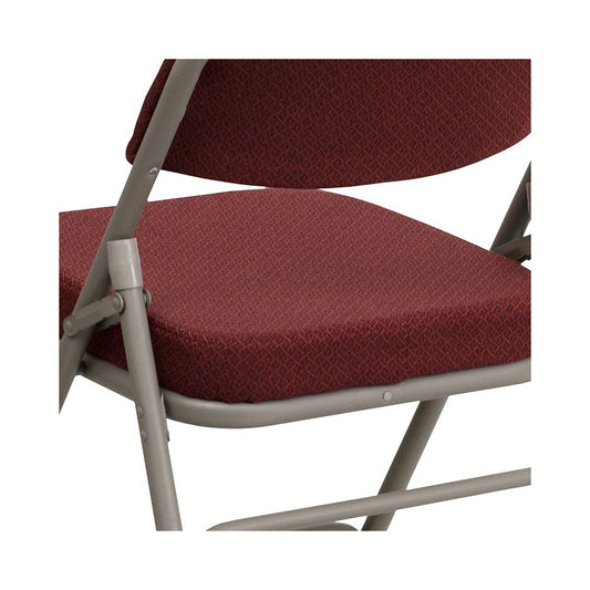 Premium Curved Triple Braced & Double Hinged Burgundy Fabric Metal Folding Chair