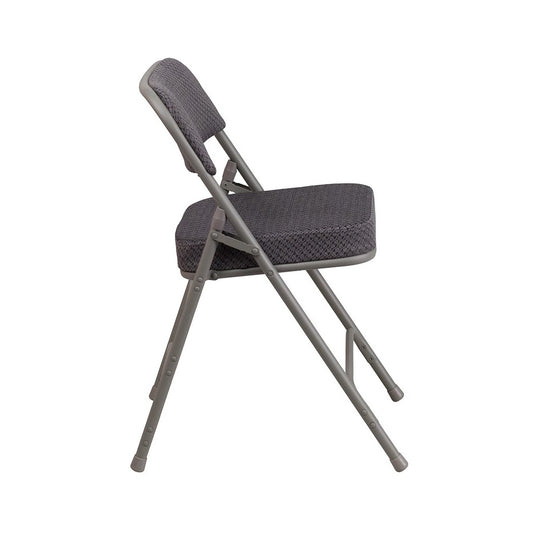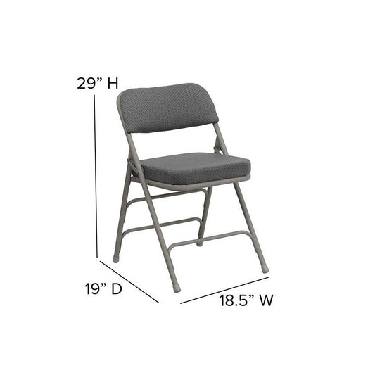 Premium Curved Triple Braced & Double Hinged Gray Fabric Metal Folding Chair