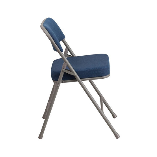 Premium Curved Triple Braced & Double Hinged Navy Fabric Metal Folding Chair