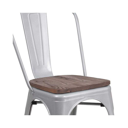 Silver Metal Stackable Chair with Wood Seat