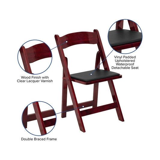 Mahogany Wood Folding Chair with Vinyl Padded Seat