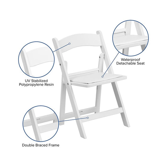 Kids White Resin Folding Chair with White Vinyl Padded Seat