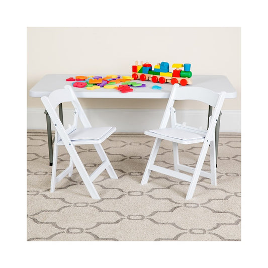 Kids Folding Chairs with Padded Seats | Set of 2 White Resin Folding Chair with Vinyl Padded Seat for Kids