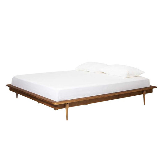 King Mid Century Modern Solid Wood Platform Bed - Caramel