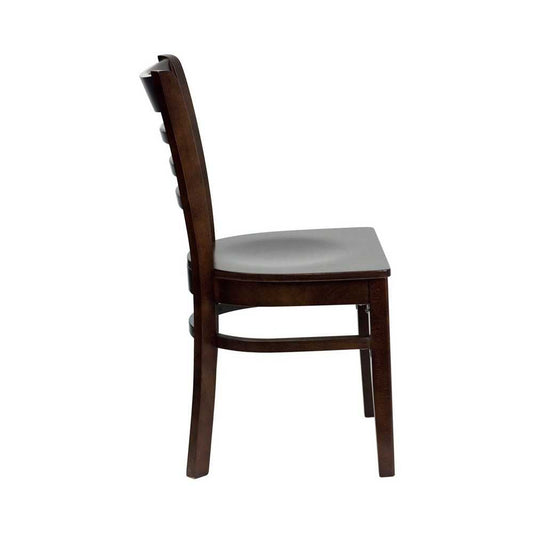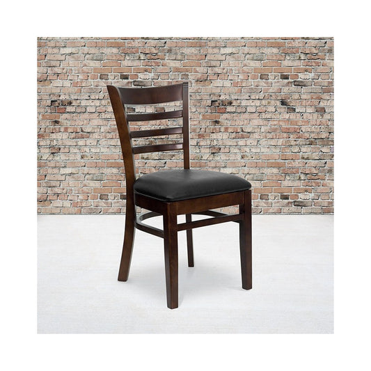 Ladder Back Walnut Wood Restaurant Chair - Black Vinyl Seat