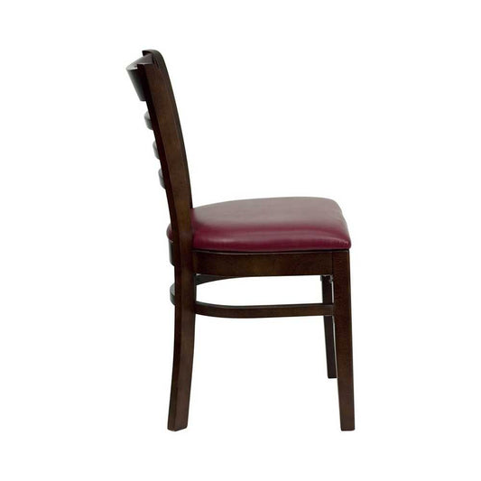Ladder Back Walnut Wood Restaurant Chair - Burgundy Vinyl Seat