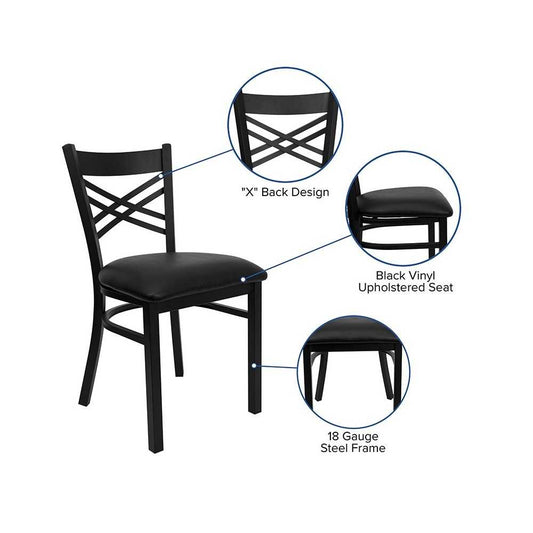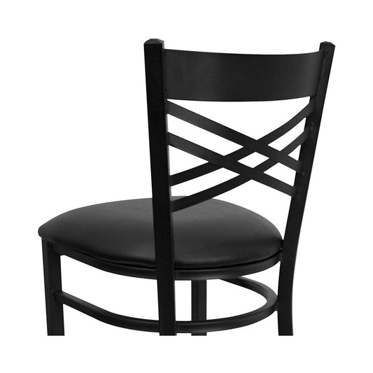 Black ''X'' Back Metal Restaurant Chair - Black Vinyl Seat