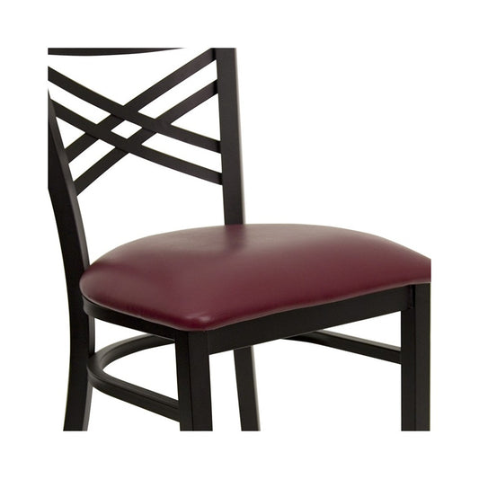 Black ''X'' Back Metal Restaurant Chair - Burgundy Vinyl Seat