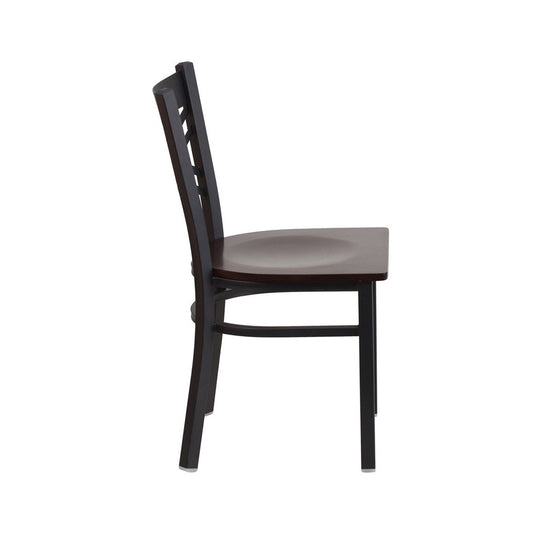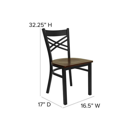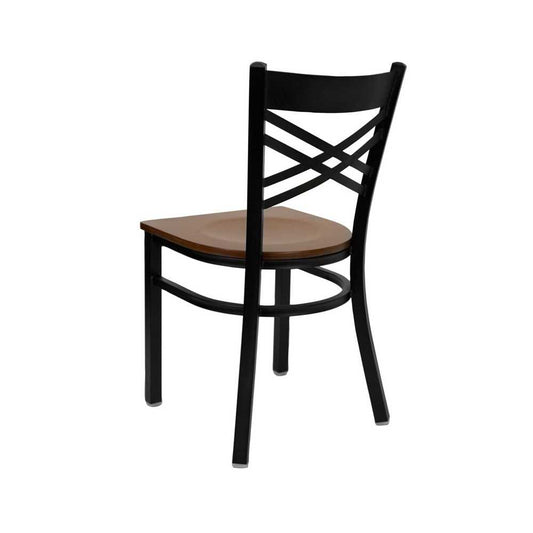 Black ''X'' Back Metal Restaurant Chair - Walnut Wood Seat