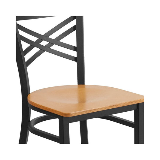 Black ''X'' Back Metal Restaurant Chair - Natural Wood Seat