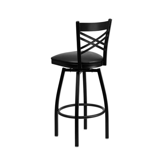 Black ''X'' Back Swivel Metal Barstool - Black Vinyl Seat