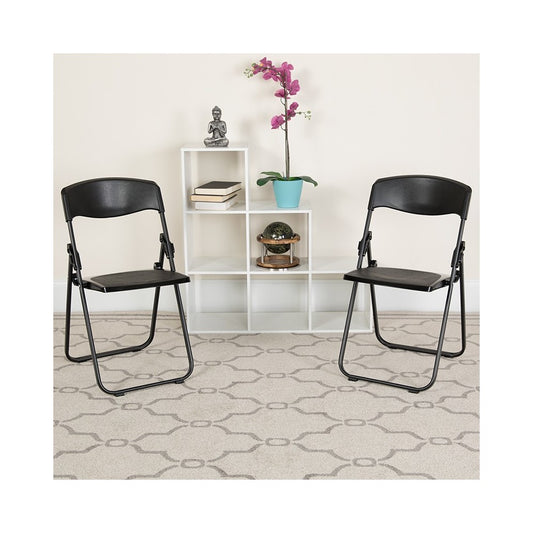 500 lb. Capacity Heavy Duty Black Plastic Folding Chair with Built-in Ganging Brackets