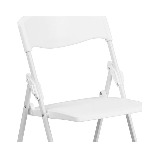 500 lb. Capacity Heavy Duty White Plastic Folding Chair with Built-in Ganging Brackets