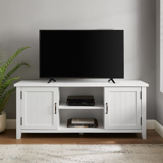 58" Modern Farmhouse Grooved 2 Door TV Stand - Solid White