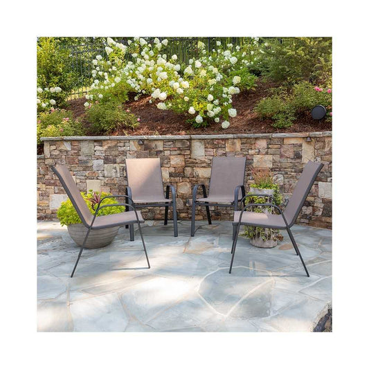 4 Pack Brazos Series Brown Outdoor Stack Chair with Flex Comfort Material and Metal Frame