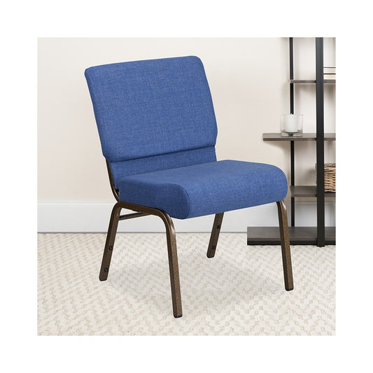 21''W Stacking Church Chair in Blue Fabric - Gold Vein Frame