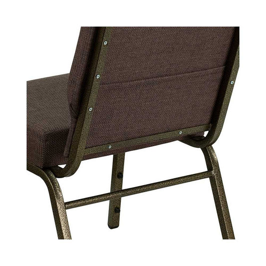 21''W Stacking Church Chair in Brown Fabric - Gold Vein Frame