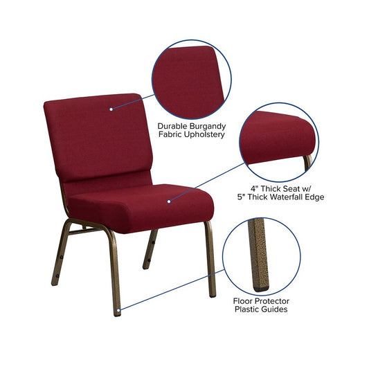 21''W Stacking Church Chair in Burgundy Fabric - Gold Vein Frame