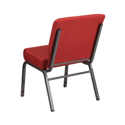 21''W Stacking Church Chair in Crimson Fabric - Silver Vein Frame