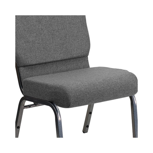 21''W Stacking Church Chair in Gray Fabric - Silver Vein Frame