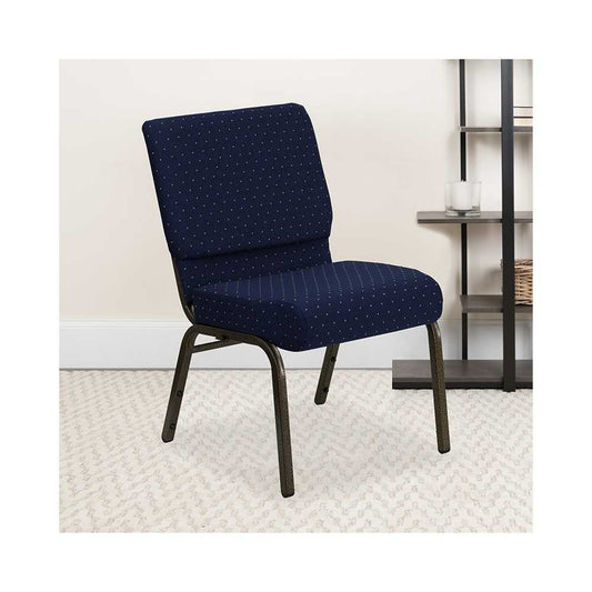 21''W Stacking Church Chair in Navy Blue Dot Patterned Fabric - Gold Vein Frame