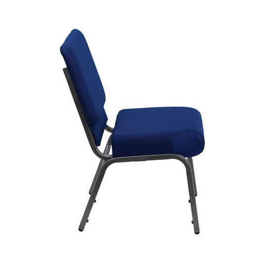 21''W Stacking Church Chair in Navy Blue Fabric - Silver Vein Frame