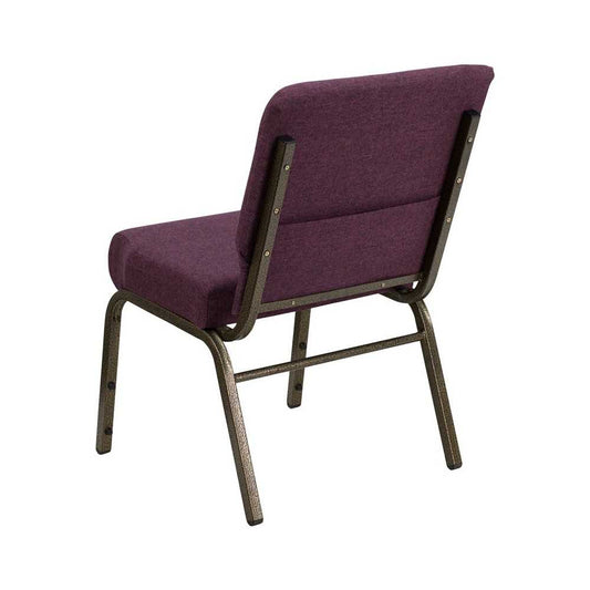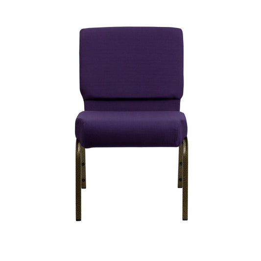 21''W Stacking Church Chair in Royal Purple Fabric - Gold Vein Frame