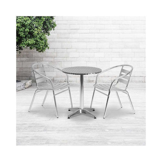 23.5'' Round Aluminum Indoor-Outdoor Table Set with 2 Slat Back Chairs